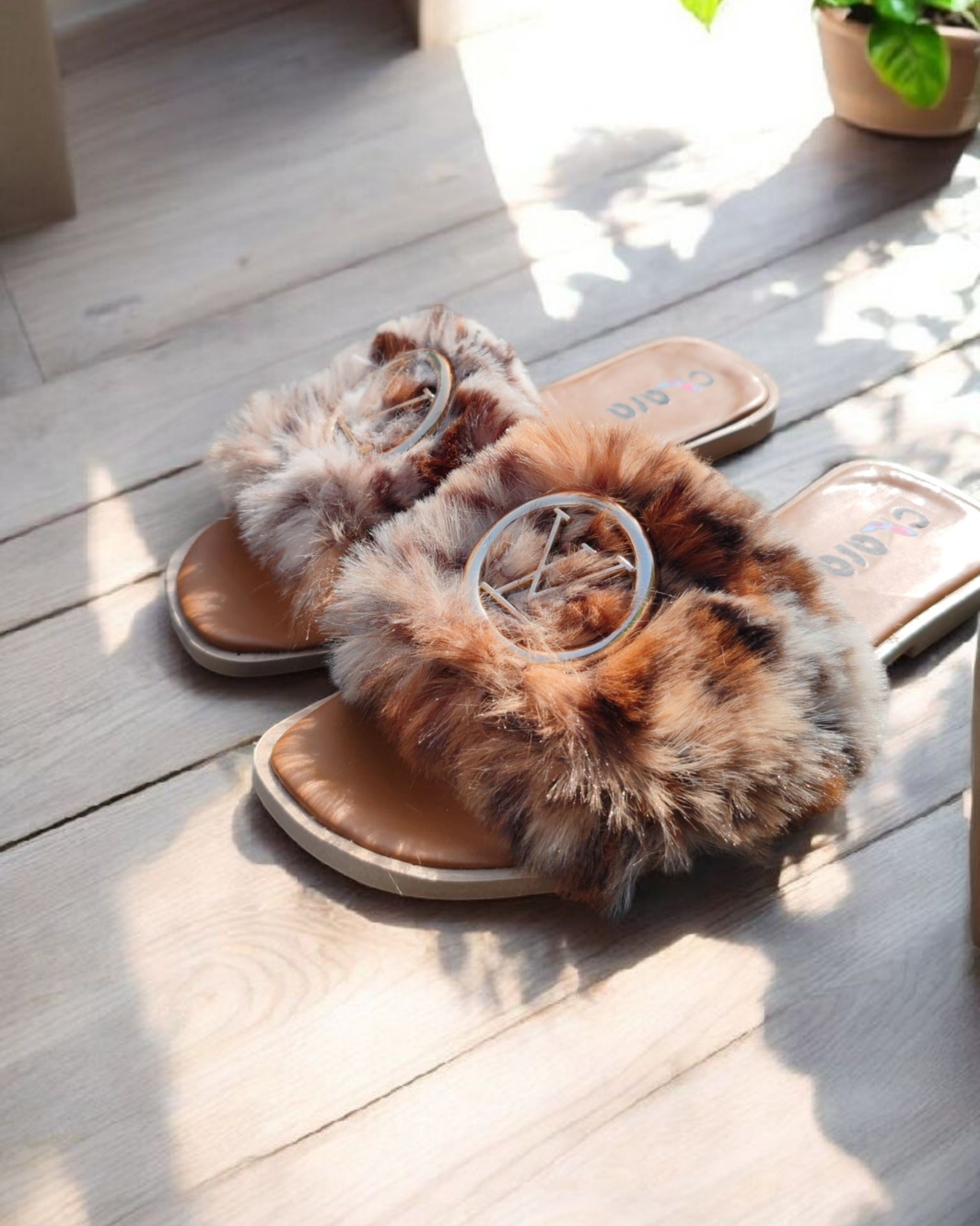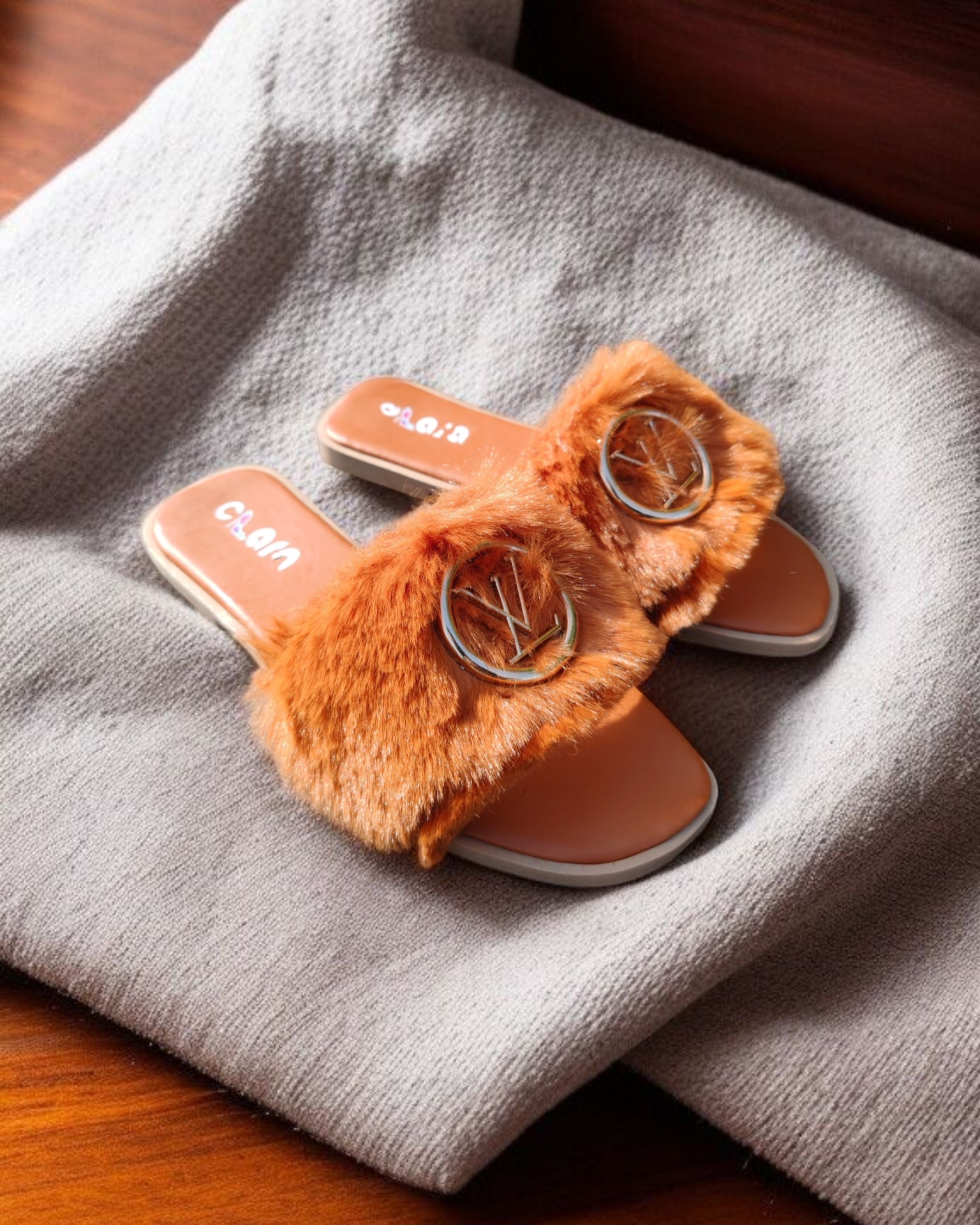 slipper نسائي أنيق بخامة فرو ناعمة وعالية الجودة، مثالي للراحة داخل المنزل مع لمسة عصرية فاخرة. يتميز بتصميمه المريح وخامته الخفيفة التي تمنح القدمين دفئ وراحة طوال اليوم.